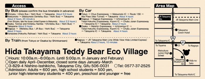 It is almost impossible to describe my pleasure in visiting the Eco Village Teddy Bear Museum in your lovely mountain home of Takayama with my ten year old granddaughter Rachel. We wished we could have stayed longer.